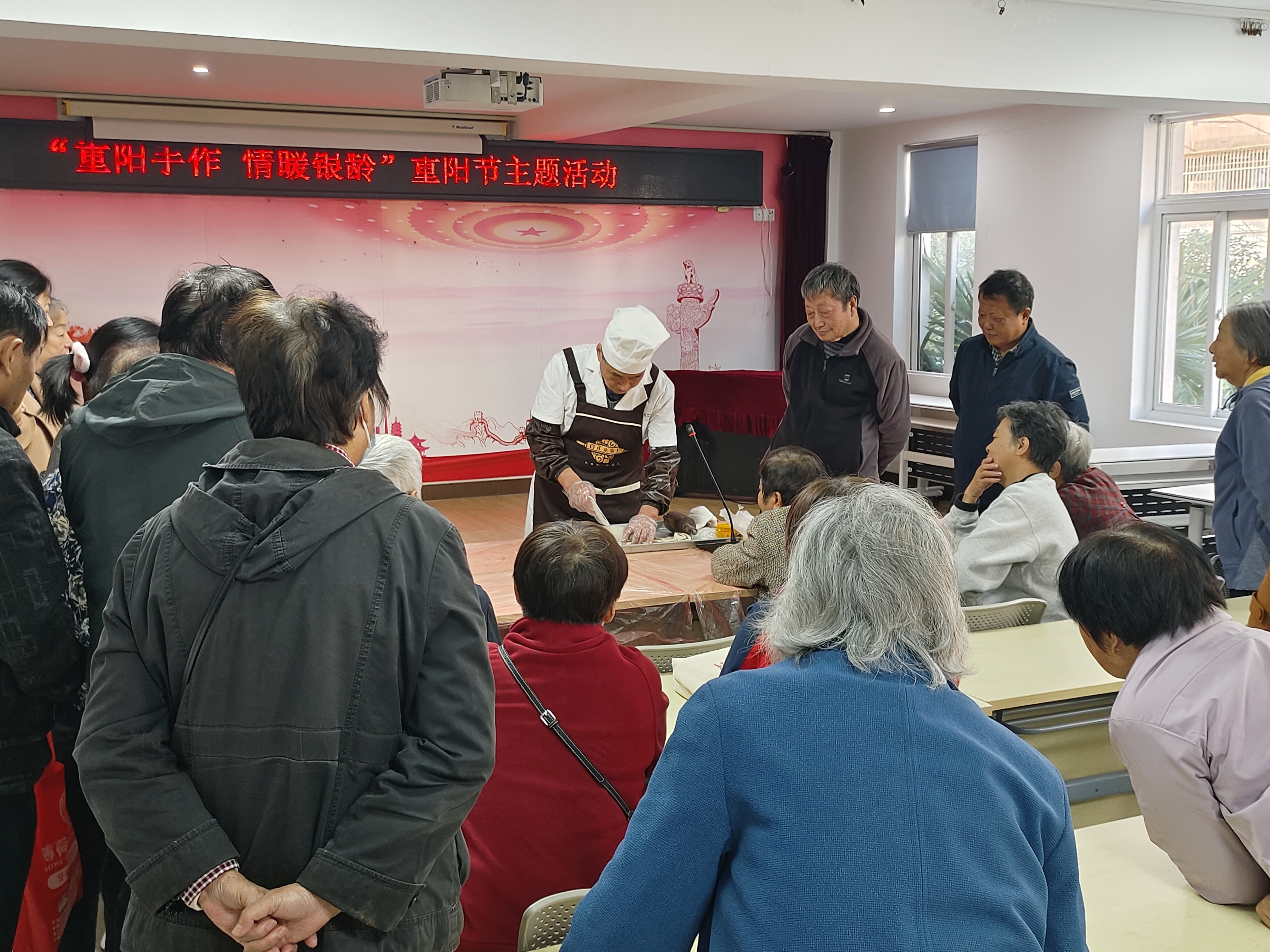 随后,非遗手作传承人季师傅现场为辖区老人制作重阳糕,季师傅娴熟的手法与对传统技艺的坚守,吸引了所有人的目光。香甜的糯米气息与方才的烛香交织在一起,将节日的氛围推向高潮。