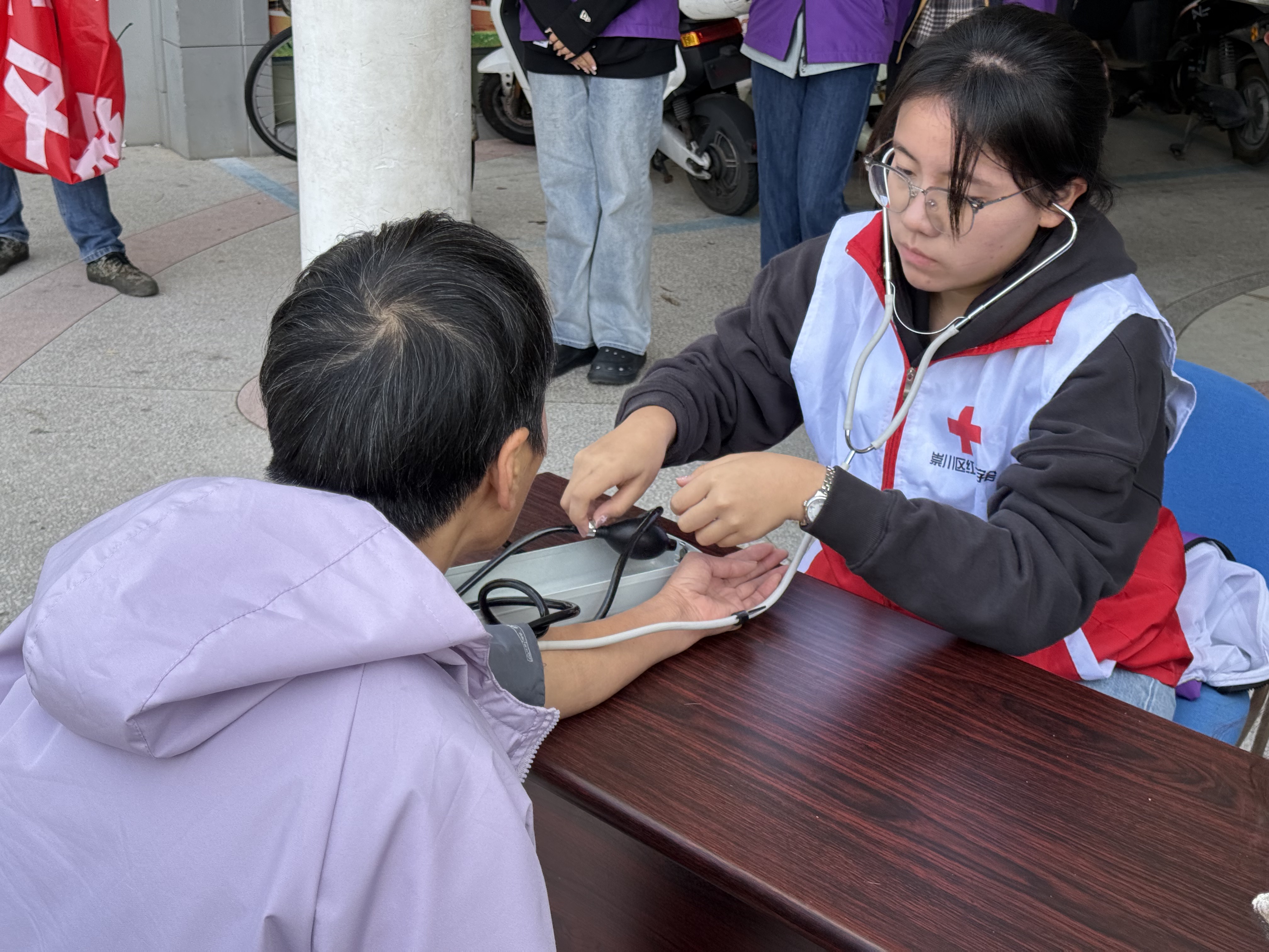 天气渐冷,来自南通大学医学院的红十字医学生志愿者们搭起服务台,为居民们提供量血压、测血糖、健康咨询等义诊服务。他们耐心细致地为前来咨询的老人讲解慢性病管理知识,针对不同居民的身体状况给出个性化健康建议,提醒居民天气转冷,要格外注意心脑血管方面的疾病。72岁的陈桂芳阿姨刚测完血压,拿着志愿者手写的健康小贴士笑着说:“这些年轻志愿者真负责,不仅帮我测了血压,还告诉我平时该怎么忌口、怎么锻炼,比去医院还方便省心。”