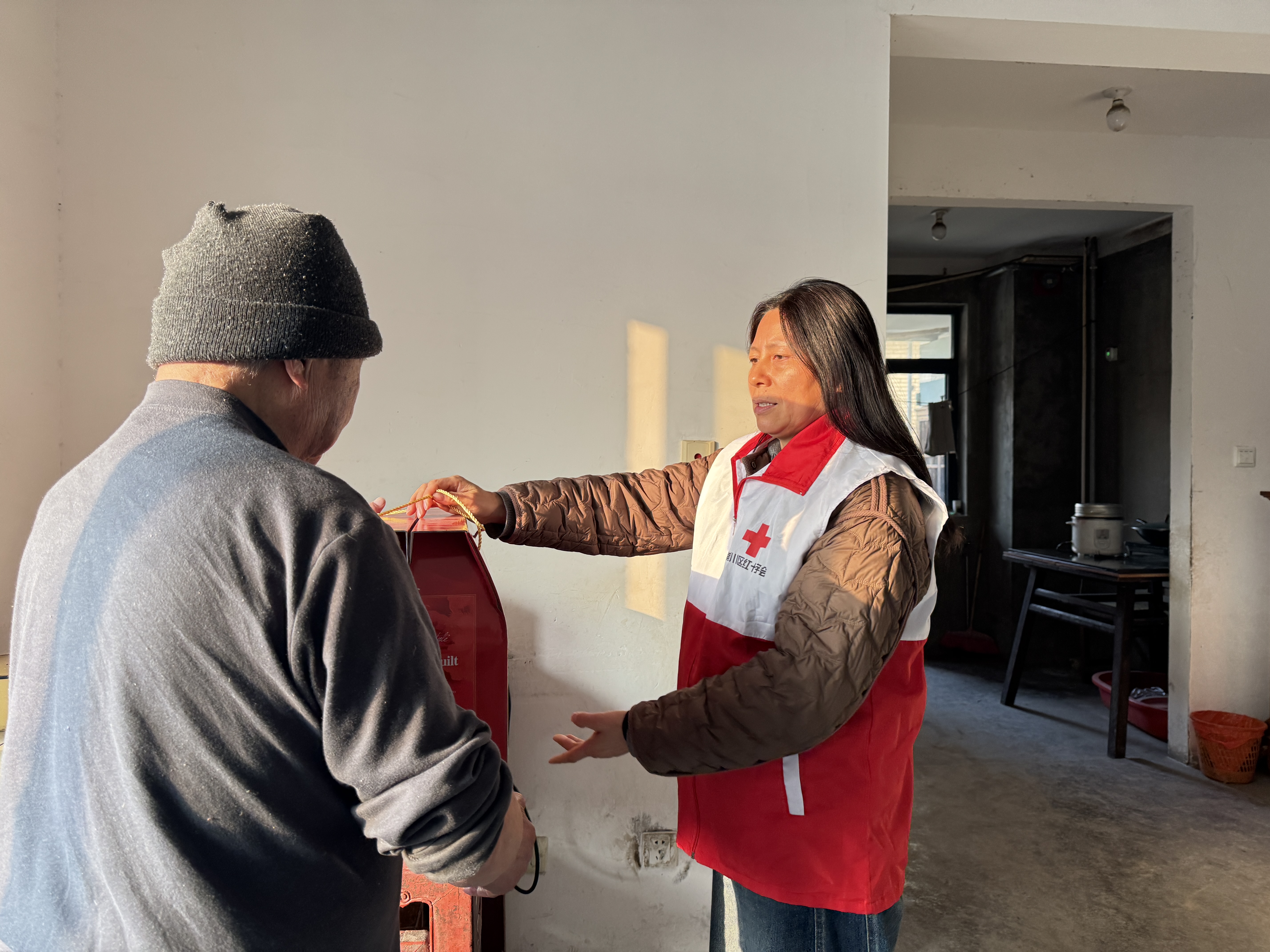 残疾孤寡老人是朝晖社区红十字会一直的牵挂,志愿者们带着米、油、冬被等慰问品,走进残疾孤寡老人家中,开展入户慰问服务。志愿者们一边帮老人打扫房间、整理衣物,一边坐下来与老人亲切聊天,倾听老人的心声,为老人缓解孤独情绪。在残疾孤寡老人荣大爷家中,志愿者们详细询问了老人的生活起居和身体状况,叮嘱老人注意冬季保暖和用电安全。退役军人陈家鹏作为志愿者代表,握着老人的手说:“我们就是您的晚辈,有任何困难随时跟我们说。”荣大爷感动得眼眶发红:“多亏了社区红十字会的惦记,一直关爱我,心里暖和极了。”