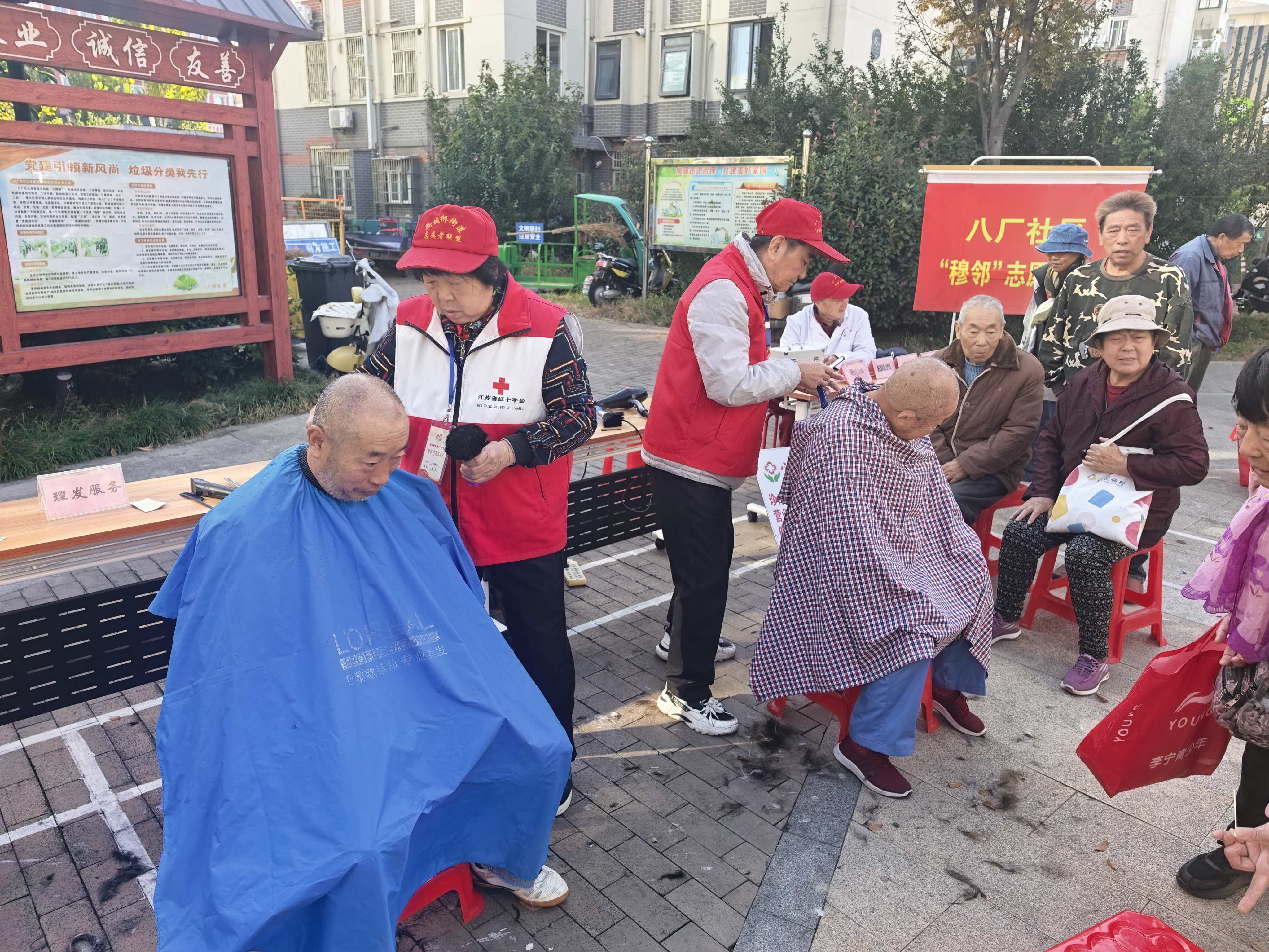 活动现场洋溢着和谐温馨的氛围,穆邻志愿服务队的红十字志愿者们耐心细致地为每一位有需求的老人免费理发。志愿者们技艺娴熟,服务热情,让老人们面貌焕然一新,精神抖擞,贴心的服务赢得了老人们的连连称赞。在健康服务区,第三人民医院医护志愿者们为老人们提供了血压测量、健康咨询等义诊服务,让老人们便捷地享受到健康服务,感受到了社会大家庭的关爱。