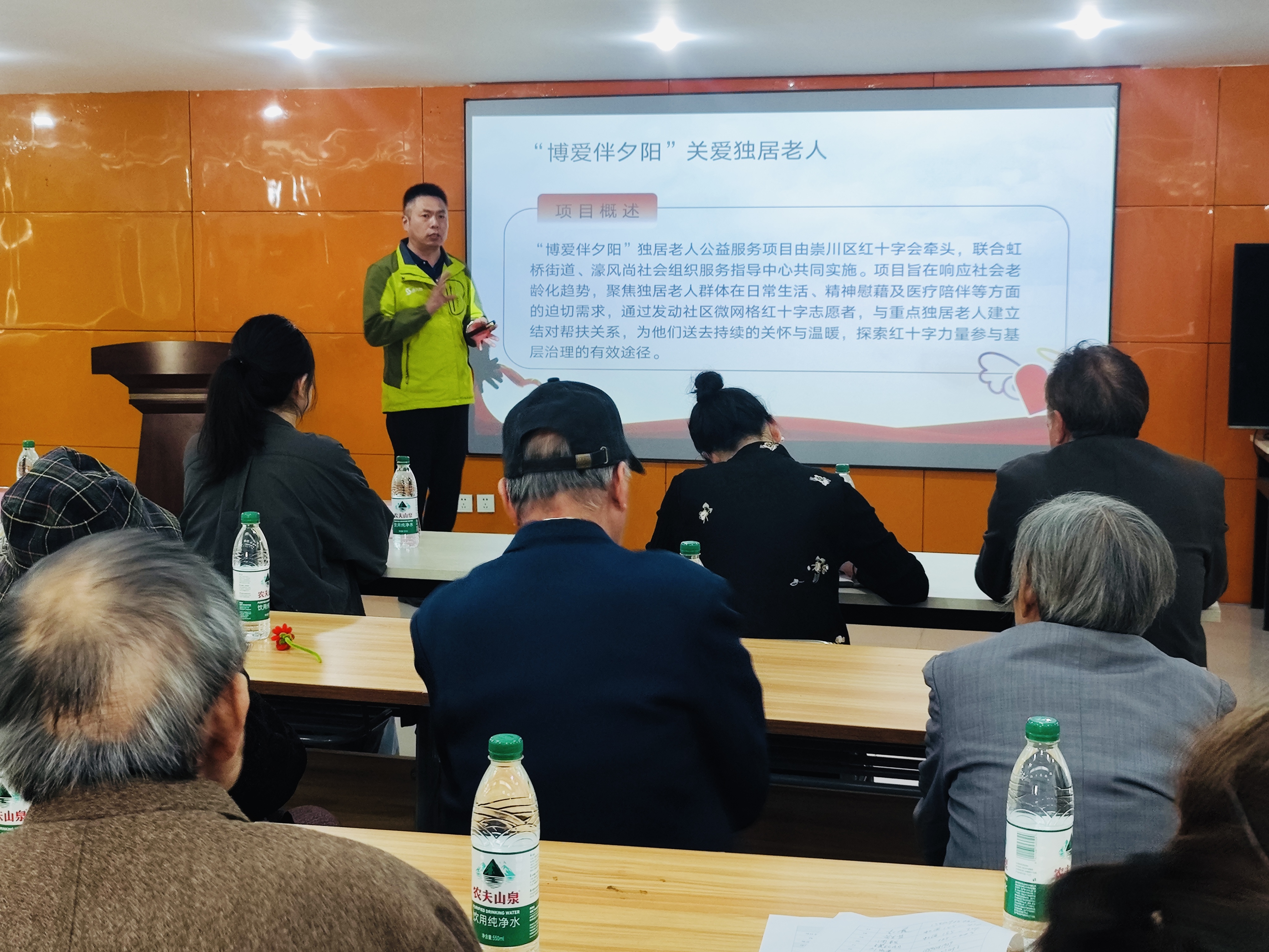 金秋重阳桂飘香,博爱温情满街巷。10月24日,南通市崇川区“博爱伴夕阳”关爱独居老人公益服务项目结项仪式在虹桥街道虹西社区博爱家园举行。崇川区红十字会党组成员、副会长吴薇,虹桥街道党工委委员、统战委员张蕾,崇川区濠风尚社会组织能力建设服务中心及志愿者、独居老人代表共40余人齐聚,在回顾项目历程、分享温情故事中,为这场持续12个月的敬老公益画上圆满句号,也开启关爱长效化新征程。
