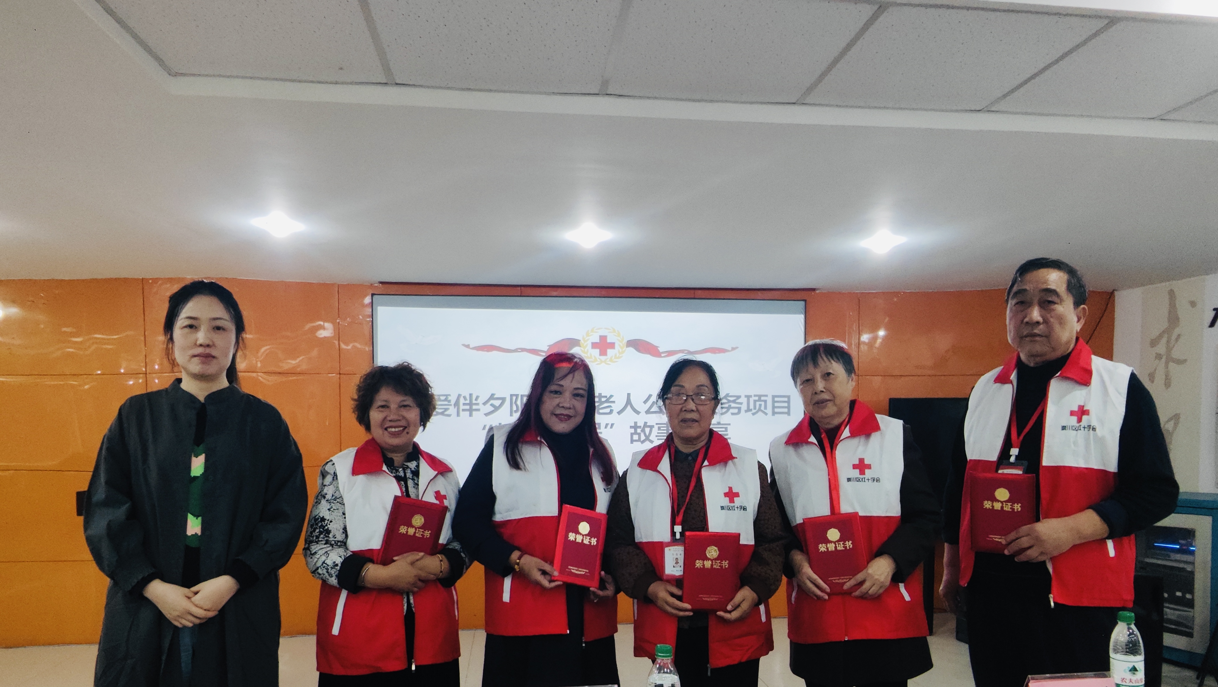 随后的荣誉颁发环节,仪式氛围推向高潮。与会领导共同为10名“优秀微网格红十字志愿者”颁发证书,当志愿者们接过证书时,台下老人自发鼓掌表示感谢。而在集体合影环节,老人们被搀扶到前排居中位置,与领导、志愿者并肩微笑,相机定格下“老有所伴、爱不缺席”的温馨画面。